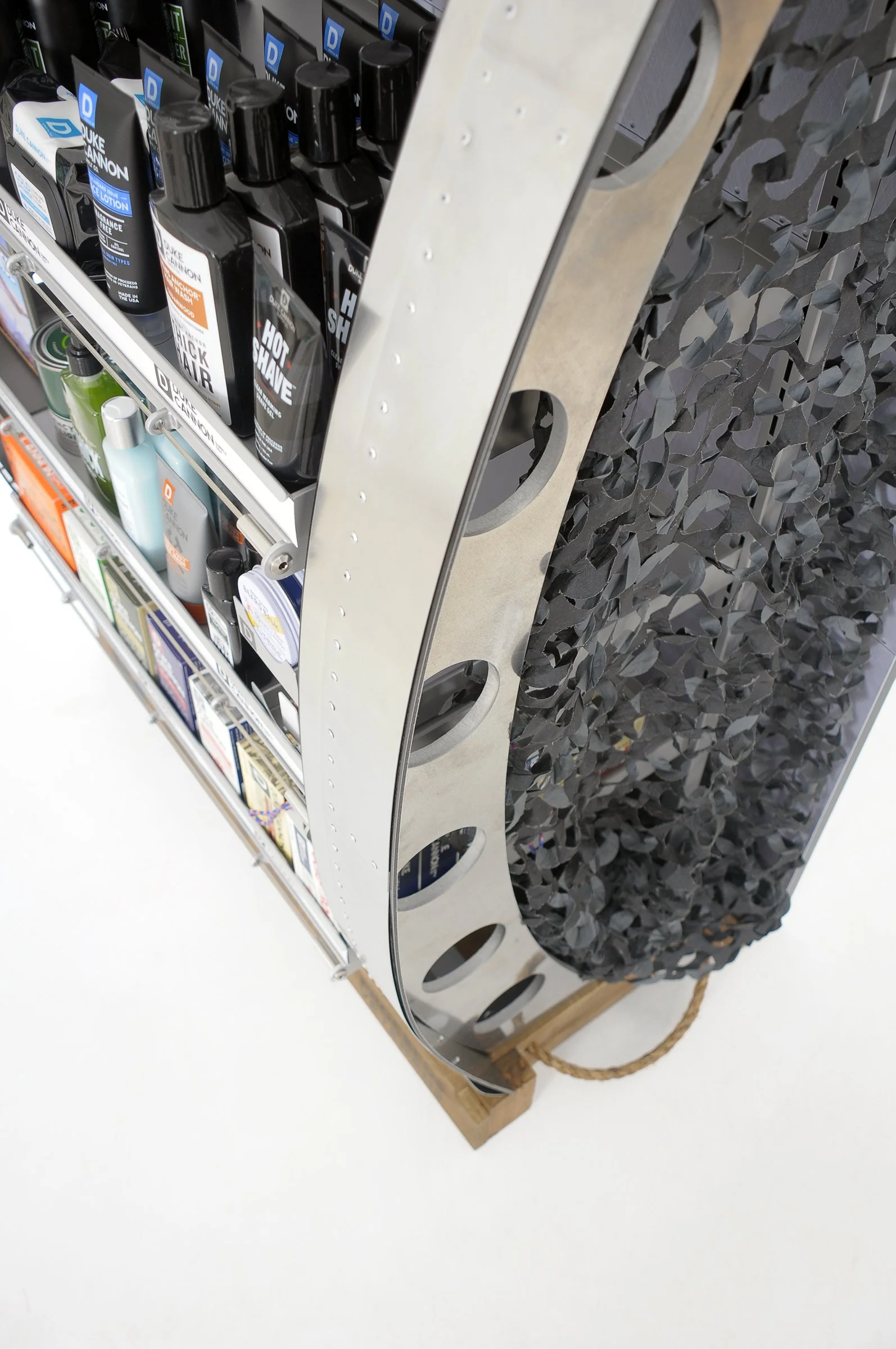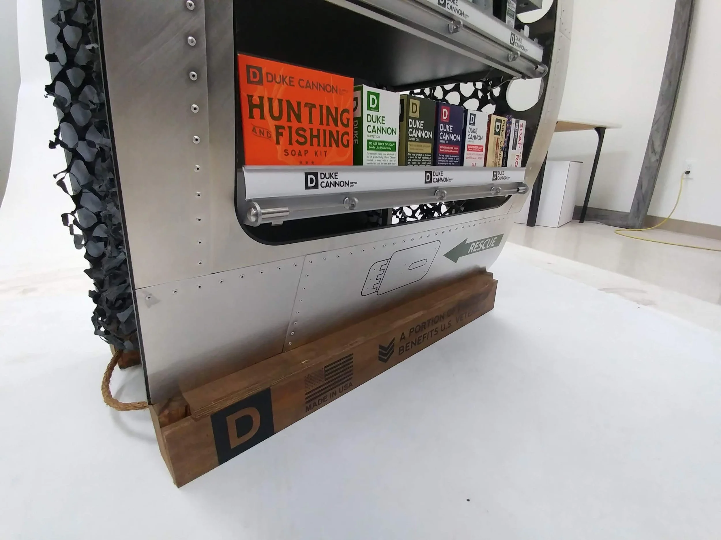 This is one of my favorite displays I’ve engineered. The concept was to have the products staged inside the open cargo door of a vintage bomber. My challenge was bringing that vision to life in a way that felt authentic.